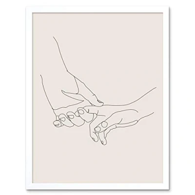 Wee Blue Coo Line Drawing Hands Holding Minimalist Art Print Framed Poster Wall Decor 12x16 inch