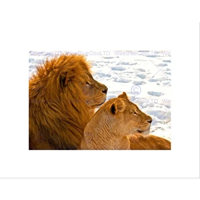 Wee Blue Coo Lion Couple Snow Profile Big Cat Art Picture Wall Print