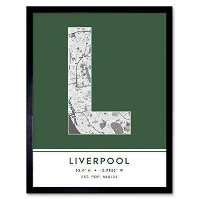Wee Blue Coo Liverpool England United Kingdom City Map Green Colour Block Modern Typography Stylish Letter Framed Word Wall Art Print Poster for Home Décor CITYMAP1
