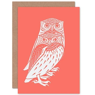 Wee Blue Coo Living Coral Owls Julie De Graag Greeting Card With Envelope Inside Premium Quality