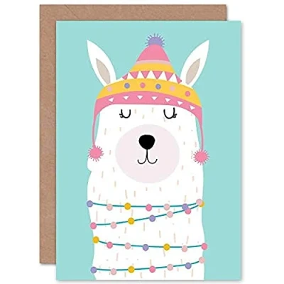 Wee Blue Coo Llama Cute Christmas Illustration Greeting Card With Envelope Inside Premium Quality
