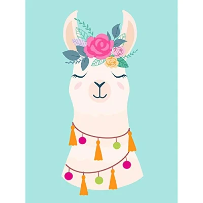 Wee Blue Coo Llama Cute Floral Large Wall Art Print Canvas Premium Poster
