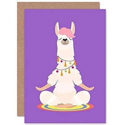 Wee Blue Coo Llama Cute Meditation Greeting Card With Envelope Inside Premium Quality