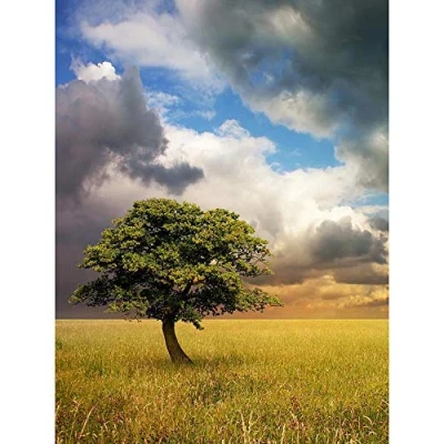 Wee Blue Coo Lone Tree Field Clouds Spring Country Grass Green Art Print Poster Wall Decor 12X16 Inch