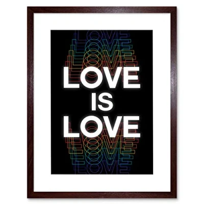 Wee Blue Coo Love Is Rainbow Retro Typography Artwork Framed Wall Art Print 12X16 Inch