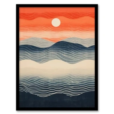 Wee Blue Coo Low Sun High Tide Orange Seascape Artwork Framed Wall Art Print A4