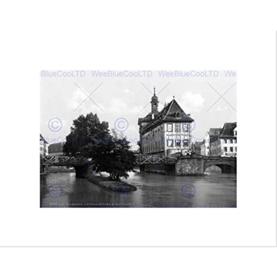 Wee Blue Coo Lower Bridge And City Hall Bamberg Bavaria 1895 BW Wall Art Print
