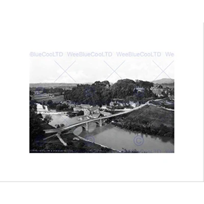 Wee Blue Coo LUDLOW AND DINHAM BRIDGE ENGLAND VINTAGE OLD BW BLACK FRAMED ART PRINT B12X312