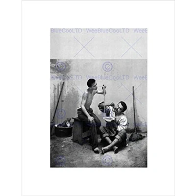 Wee Blue Coo MACARONI EATERS NAPOLI ITALY 1895 VINTAGE OLD BW FRAMED ART PRINT MOUNT B12X2636