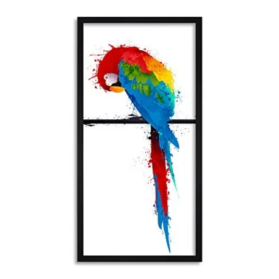 Wee Blue Coo Macaw Parrot Bird Paint Splat Long Panel Framed Wall Art Print