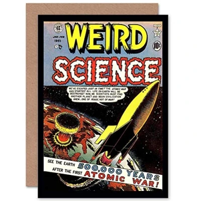 Wee Blue Coo MAGAZINE COVER 1951 WEIRD SCIENCE SCI FI ATOMIC WAR SPACE GREETINGS CARD