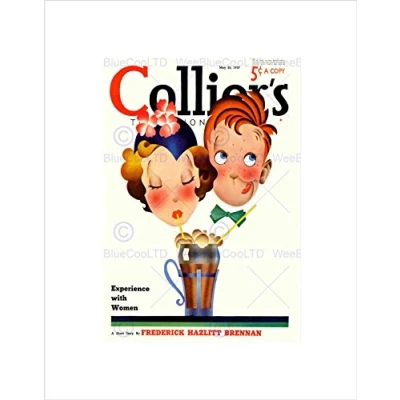 Wee Blue Coo Magazine Cover Collier USA Milkshake Straw Man Woman Wall Art Print