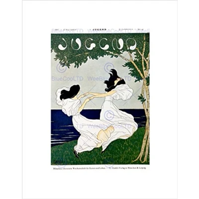 Wee Blue Coo MAGAZINE COVER JUGEND GERMANY GIRLS DANCE SEA TREE FRAMED ART PRINT B12X6874