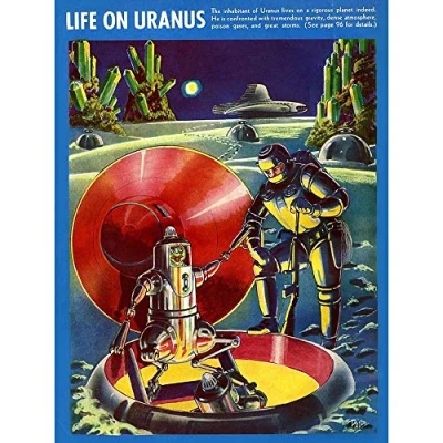 Wee Blue Coo Magazine Cover Vintage Life On Uranus Fantastic Adventures 1940 Art Print Poster Wall Decor 12X16 Inch