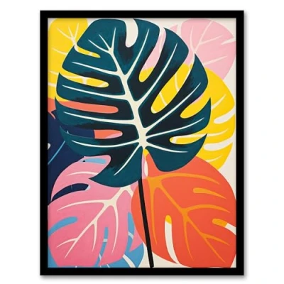 Wee Blue Coo Magical Monstera Multicoloured Leaf Artwork Framed Wall Art Print A4