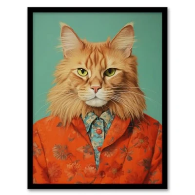 Wee Blue Coo Maine Coon Ginger Pet Cat Portrait Fun Artwork Framed Wall Art Print A4