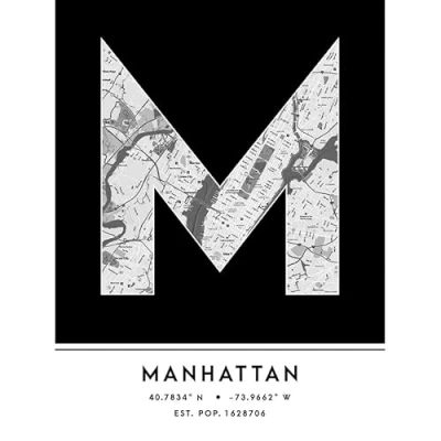 Wee Blue Coo Manhattan New York United States City Map Black & White Colour Block Modern Typography Stylish Letter Unframed Word Wall Art Print Poster for Home Décor CITYMAP1