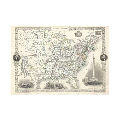 Wee Blue Coo Map 1851 Tallis Rapkin United States USA Vintage Wall Art Print