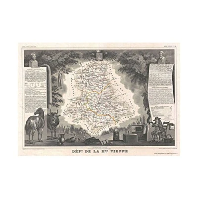 Wee Blue Coo Map 1852 Levasseur Haute Vienne France Wall Art Print