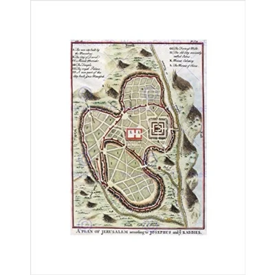 Wee Blue Coo MAP ANTIQUE CITY PLAN JERUSALEM PALESTINE BLACK FRAMED ART PRINT B12X7027