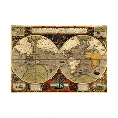 Wee Blue Coo Map Antique Hemisphere Globe World Wall Art Print