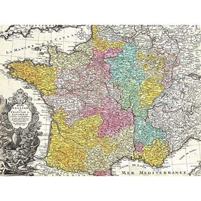 Wee Blue Coo Map Antique Homann Heirs France Art Print Poster Wall Decor 12X16 Inch