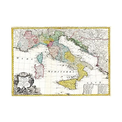 Wee Blue Coo Map Antique Homann Heirs Italy Mediterranean Sea Wall Art Print