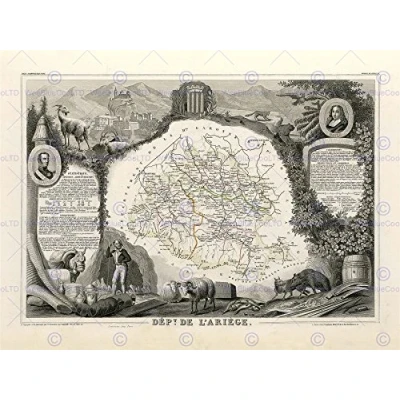 Wee Blue Coo Map Antique Illustrated France Levasseur Ariege Wall Art Print