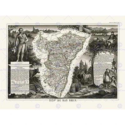 Wee Blue Coo Map Antique Illustrated France Levasseur Bas Rhin Wall Art Print