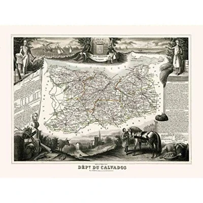 Wee Blue Coo MAP ANTIQUE ILLUSTRATED FRANCE LEVASSEUR CALVADOS DEPARTMENT ART PRINT HP1439