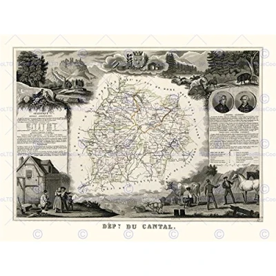 Wee Blue Coo Map Antique Illustrated France Levasseur Cantal Wall Art Print