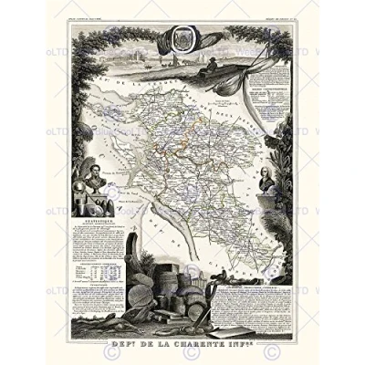 Wee Blue Coo Map Antique Illustrated France Levasseur Charente Inferior Wall Art Print
