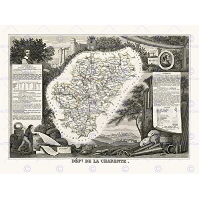 Wee Blue Coo Map Antique Illustrated France Levasseur Charente Wall Art Print