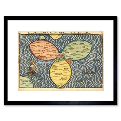 Wee Blue Coo Map Antique Jerusalem Bunting Clover Leaf World Framed Wall Art Print