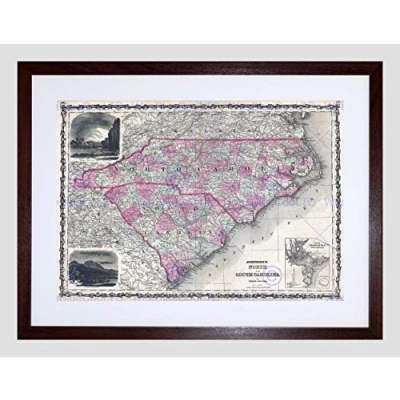 Wee Blue Coo Map Antique Johnson North South Carolina Framed Wall Art Print