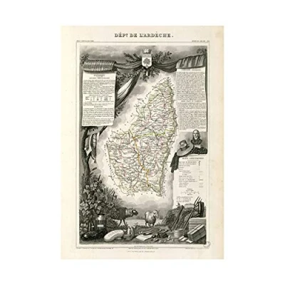 Wee Blue Coo Map Antique Levasseur Ardeche Department Wall Art Print