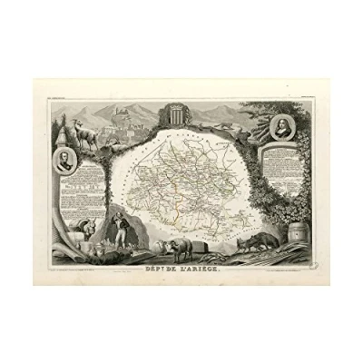 Wee Blue Coo Map Antique Levasseur Ariege Department Wall Art Print