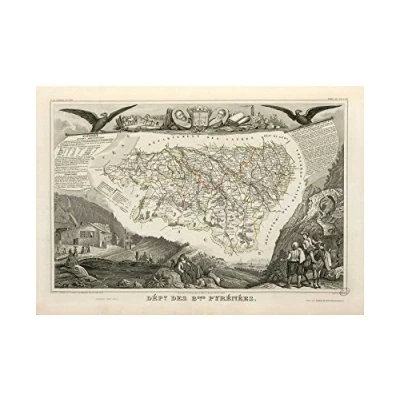 Wee Blue Coo Map Antique Levasseur Basses pyrenees Department Wall Art Print