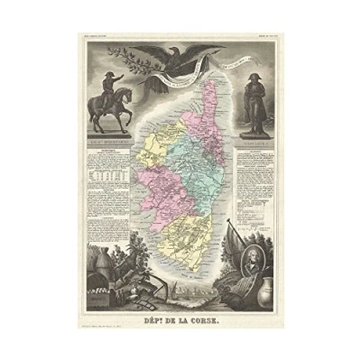 Wee Blue Coo Map Antique Levasseur Corsica Department France Wall Art Print