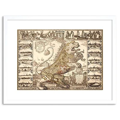 Wee Blue Coo MAP ANTIQUE LION NETHERLANDS LEO VISSCHER FRAMED PRINT F97X3975