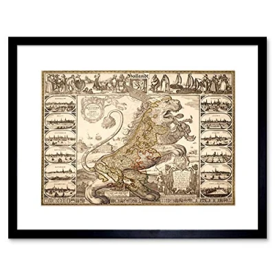Wee Blue Coo Map Antique Lion Netherlands Leo Visscher Framed Wall Art Print