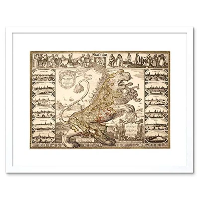 Wee Blue Coo Map Antique Lion Netherlands Leo Visscher Framed Wall Art Print