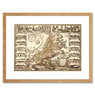 Wee Blue Coo Map Antique Lion Netherlands Leo Visscher Framed Wall Art Print