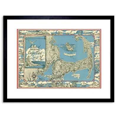 Wee Blue Coo MAP ANTIQUE MILLER CAPE COD TOURIST INTEREST FRAMED PRINT F97X3486