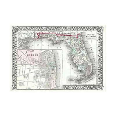 Wee Blue Coo Map Antique Mitchell Florida State USA Wall Art Print