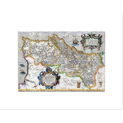 Wee Blue Coo MAP ANTIQUE PORTUGAL IBERIA ATLANTIC BLACK FRAMED ART PRINT PICTURE B12X7089