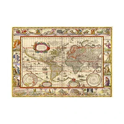 Wee Blue Coo Map Antique World Decorative Ornate Wall Art Print