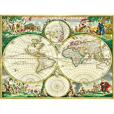 Wee Blue Coo Map Antique World Globe Hemisphere Illustrated Art Canvas Print