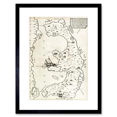 Wee Blue Coo Map Greek Island Corfu Antique Greeces Picture Framed Wall Art Print
