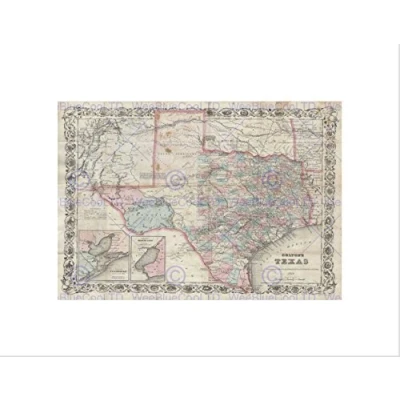 Wee Blue Coo MAP ILLUSTRATED ANTIQUE COLTON TEXAS BLACK FRAMED ART PRINT B12X4927